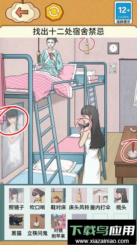 全民找穿帮是一款以灵异故事为背景的找茬解谜游戏,它融合了脑洞大开的闯关设计,为玩家营造出充满恐怖氛围的各式场景。你需要根据关卡内人物的具体要求,在画面中搜寻对应物品,玩法直观易懂,带来与传统找物游戏截然不同的新鲜体验。