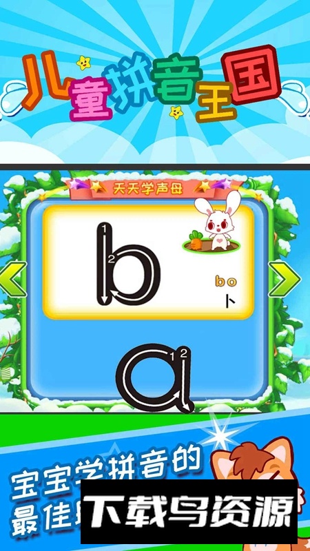 儿童拼音王国APP官方最新版专为幼龄学习者打造,通过趣味互动方式引导孩子轻松入门汉语拼音与基础汉字。软件融合了丰富的教学资源与多种游戏环节,在生动活泼的氛围中激发孩子的学习热情,有效提升识字认读能力;如果喜欢不妨在本站下载。
