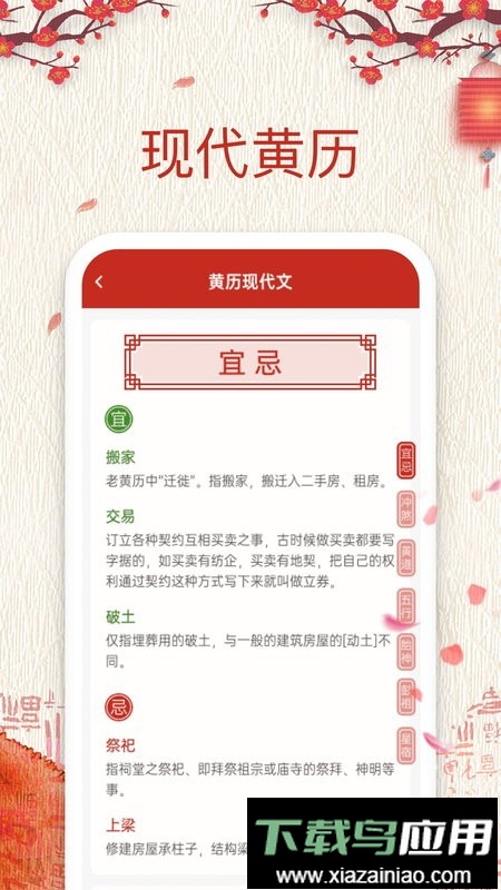 3、界面设计清新简洁,风格典雅,专注于打造优质的中式万年历体验;