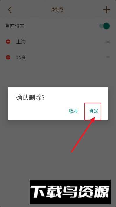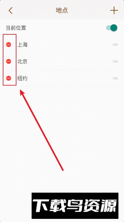 第二步,在希望删除的城市名称前点击减号图标。