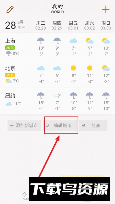 我的天气怎么删除其他城市?
