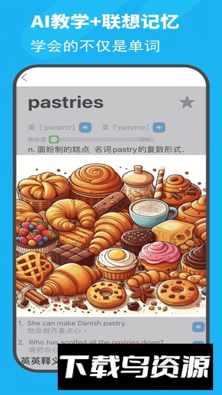 1.多维度学习体验:包含听说读写全面训练,涉及闪卡记忆、语境例句及词根词缀解析。