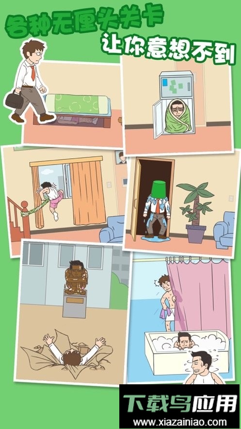 玩家可以逐步解锁各式各样的道具,层出不穷的搞笑场景能让你的日常生活节奏变得更加轻快。