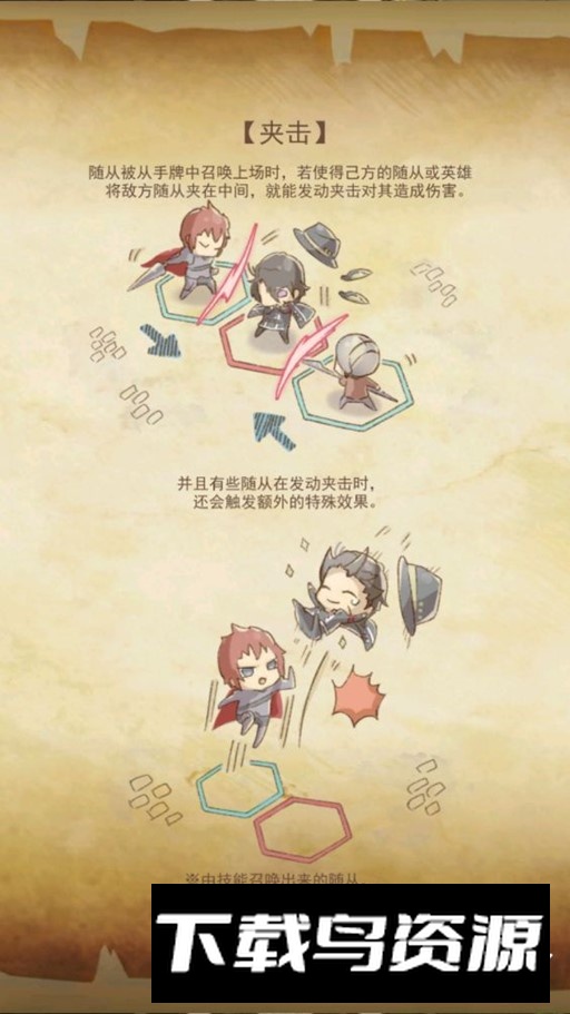 消灭效果意味着只要形成夹击,即使敌人生命值极高也会被立即移除;小哈作为解场与反制手段,在前中后期都能发挥稳定作用;关于夹击的具体判定规则,可参考下图说明。