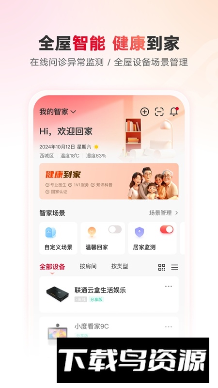 中国联通推出的智慧生活应用客户端,集成了智能家居控制、网络管理、家庭业务办理与语音交互等多种功能;经过全面升级,这款应用性能更为强大,用户可免费下载使用,喜欢的不妨在本站下载。