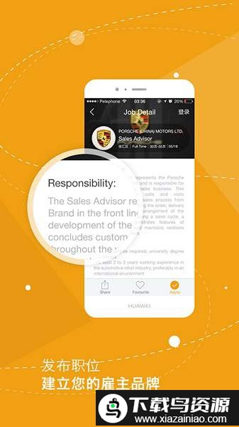 6,搜索职位、上传图片、投递简历及留言等操作流程均简单易用;