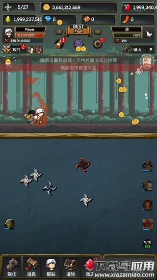 2、操控小忍者灵活投掷飞镖击退敌人,过程爽快有趣。