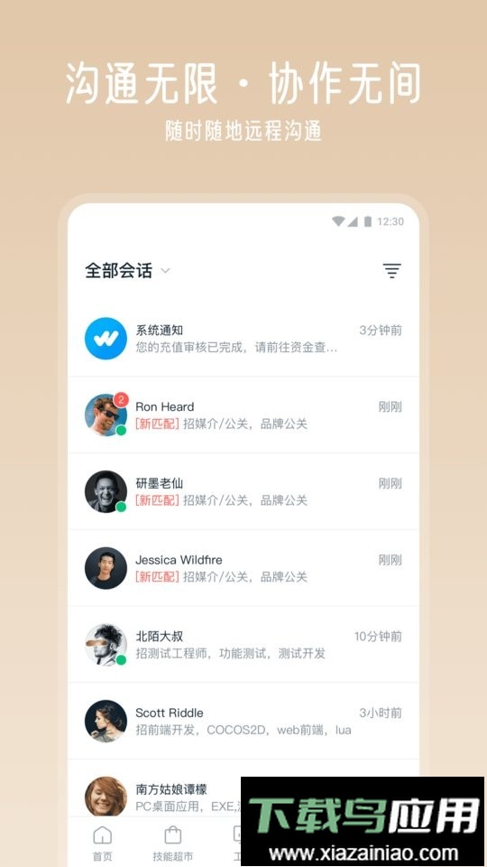 平台设有技能超市模块,人才可将自己擅长的服务以固定价格上架,雇主可直接浏览并选购所需服务;目前已上架服务覆盖研发、设计、文案写作、音视频制作、运营及市场营销等多个领域。