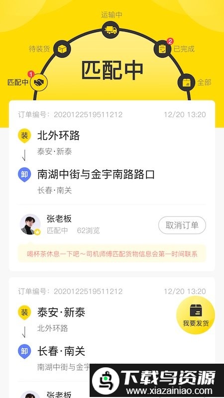 5、实时发布货源订单,填写详细收发地址后便可一键发货;