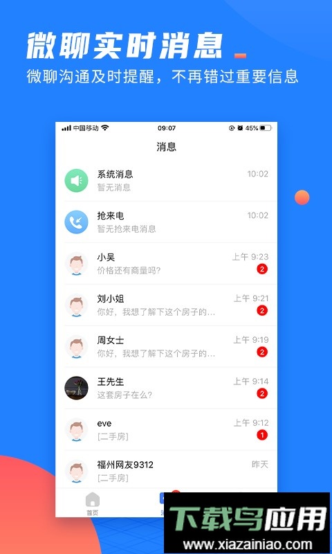 1、在线与大量找房客户即时沟通;