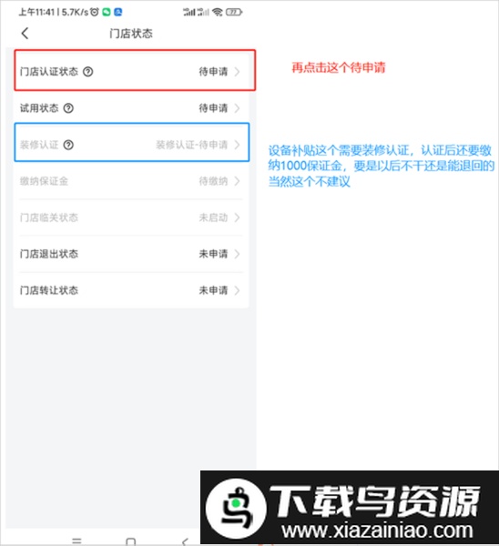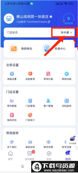5、在【我的】页面查看门店状态,点击【待申请】选项;