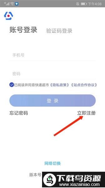 1、打开兔喜生活app,进入登录页面,点击【立即注册】选项;