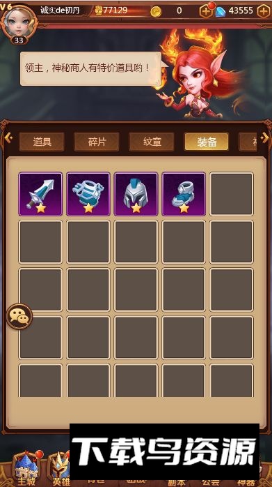 装备是提升英雄实力的核心途径,能够直接增加攻击力与生命值;装备主要通过征战关卡掉落或在锻造所中合成获得。