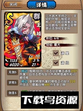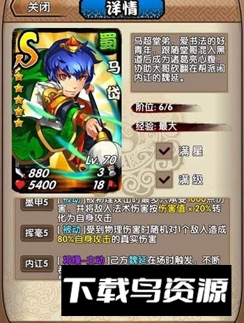 若论攻击潜力,此卡牌应作为压轴。仅需一星即可复制全场最高攻击,是魔王挑战的必备辅助。马岱与宋朝的翻倍上限为999倍,而王越可达9999倍。配合马岱、宋朝或王平的翻倍机制,能产生极强效果。值得注意的是,王平因设计上可复制将缘技能,导致其无法学习蓝瞳技能,亦不能复制王越的剑圣技能,否则实力将更为突出。