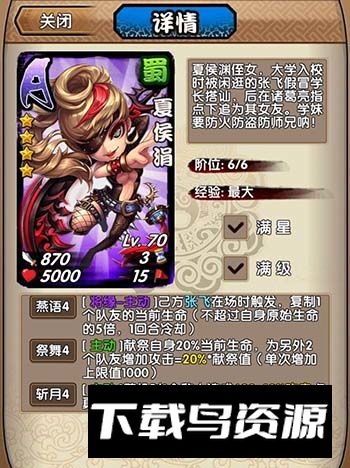 技巧提示:夏侯娟的攻击加成虽高但随机,为稳定将攻击附加至核心卡牌,有时可采用4人甚至3人阵容挑战魔王,使加成更集中稳定,效果可媲美吕布与貂蝉组合,但适用场景较为有限。