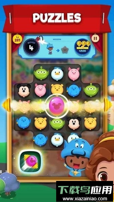 1. 画风清新卡通,充满梦幻感,是一款围绕迪士尼主题展开的消除游戏。