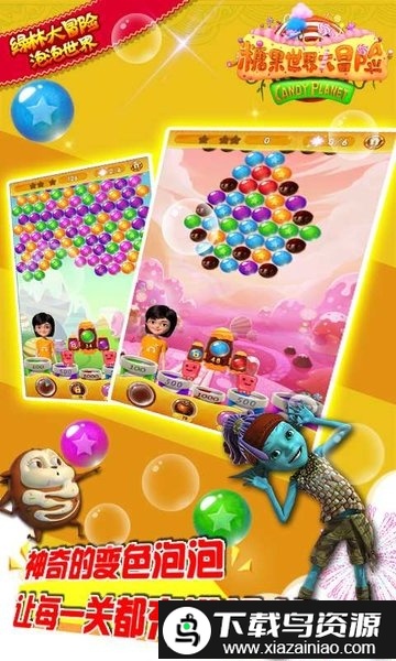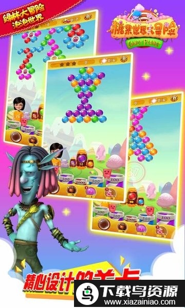本游戏是以动画电影《糖果世界大冒险》为背景创作的泡泡龙消除游戏。玩法简单直观,目标明确,整体氛围轻松愉快;你将沉浸于这个满是糖果泡泡的奇幻世界中,开启一段甜美的冒险。