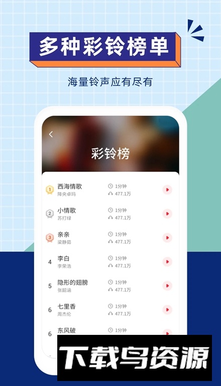 爱听铃声安卓版最新版本是一款功能丰富的音频工具,它为用户准备了海量个性化的铃声素材。软件内置庞大的曲库,覆盖多种音乐风格与类型,能够贴合不同用户的听觉偏好;通过它,你可以轻松找到并设置自己喜欢的铃声,让手机声音更具个人特色。如果感兴趣,不妨在本站下载体验。