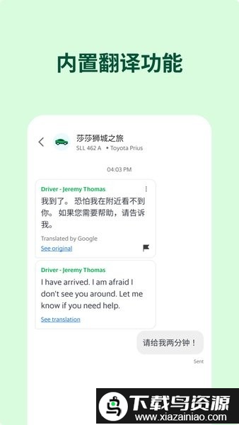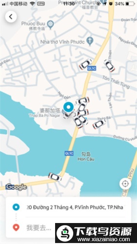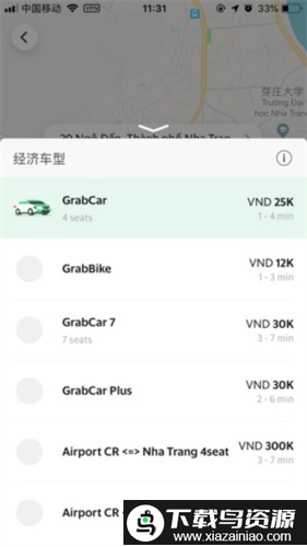 打开应用后,界面会显示周边可用车辆的数量,其操作逻辑与国内常用打车软件类似。