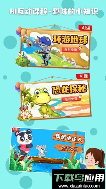 应用包含多个深受孩子喜爱的科普类别:百科知识、地球科学、国家地理、恐龙世界、动物王国、海洋探秘、太空宇宙;同时设有AI互动答题课程、AR视觉交互百科欢乐谷、科学绘本馆及科学音频馆等模块。