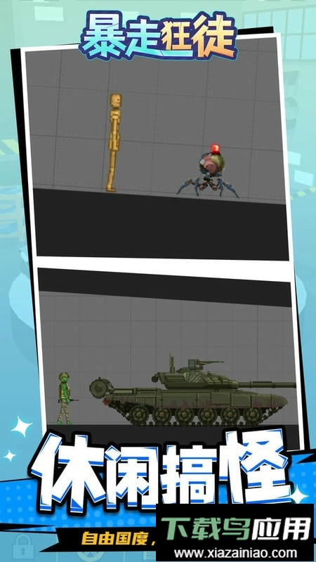 暴走狂徒是一款沙盒破坏模拟类型的手机游戏,它提供了类似沙盒模拟器的开放体验。玩家能够沉浸于自由搭建与肆意破坏的乐趣之中,可以随心所欲地构造各类环境场景,并运用丰富的武器与道具进行摧毁模拟,享受刺激畅快的游戏过程。