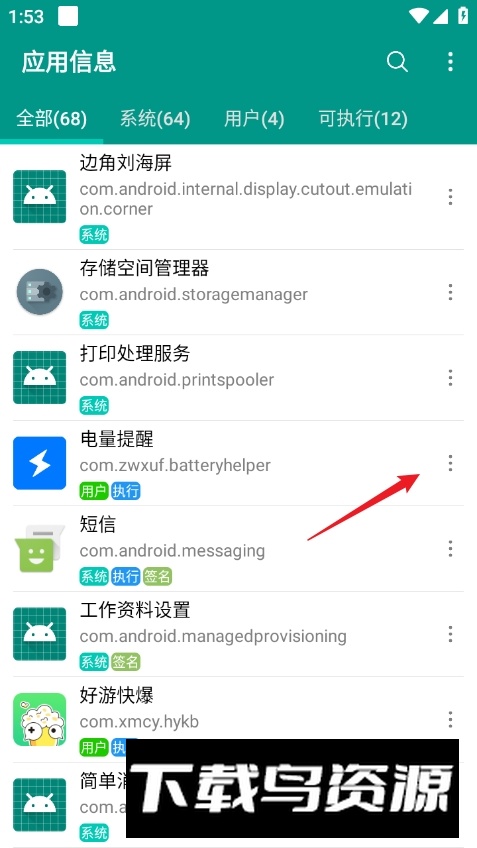 1. 在应用列表中找到对应软件,点击其右侧的三个点图标;