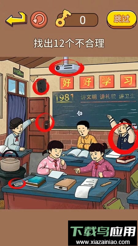 找出不合理是一款考验眼力与思维的解谜类手机游戏,玩家需要在大开脑洞的关卡中搜寻目标物品,完成各种趣味任务。游戏设置了丰富的挑战场景,每一关都要求你仔细观察画面细节,点击找出所有不符合常理之处,看看你能用多短的时间成功通关!