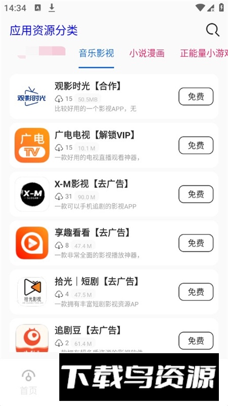 1、实用工具;2、休闲娱乐;3、网络加速;4、音乐影视;5、小说漫画;6、益智小游戏;7、短剧推荐。