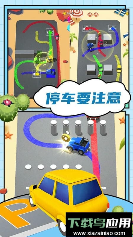 这是一款富有乐趣的益智停车模拟游戏,玩家将扮演汽车驾驶员,目标是把车辆准确停入车位。道路驾驶时务必注意交通安全,牢记行车规范。能否成功停车,取决于你通过点击和画线来引导汽车移动的操作。