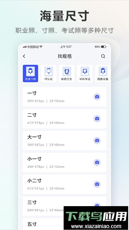 提供海量照片尺寸模板,方便用户自由选择与调整,轻松制作出符合要求的精美证件照;