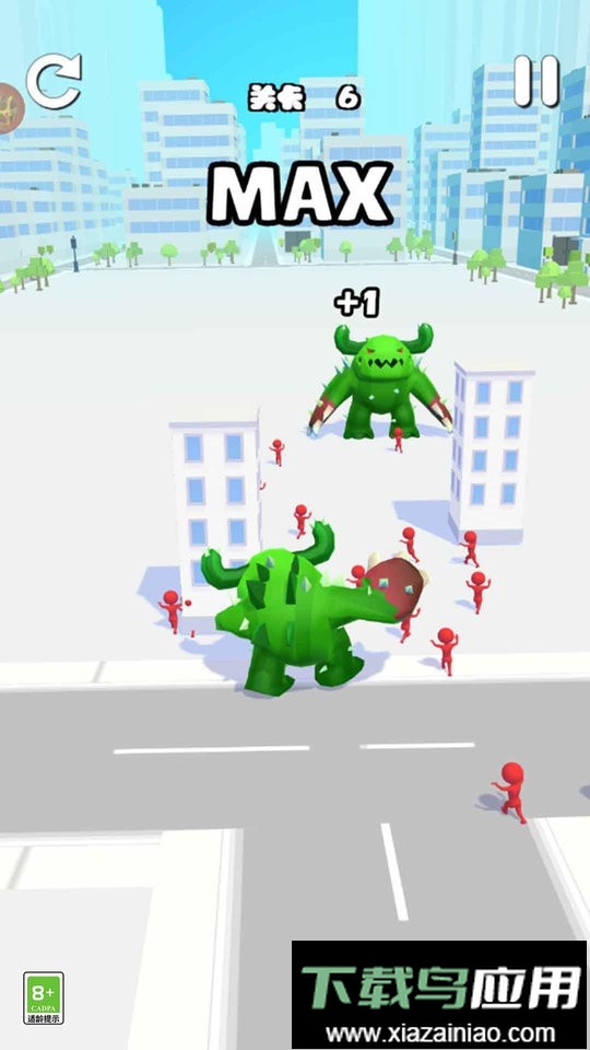 怪兽争霸赛是一款休闲竞技手游,玩家将操控怪兽在城市中展开破坏。你需要吞噬街道上的行人来增强自身,同时摧毁沿途的建筑与防御武器。游戏包含丰富关卡与多样怪兽,通过不断吞噬成长,击败强大对手,最终成为城市的霸主。