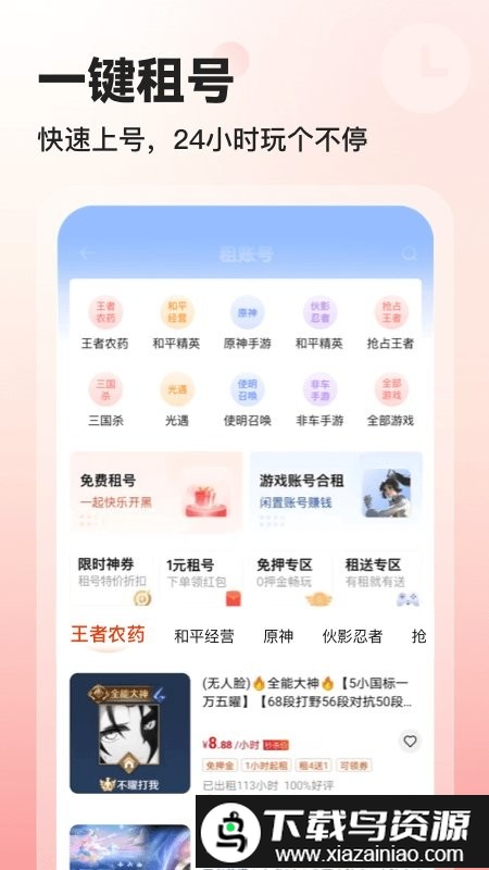 2.便捷租号体验:稀有皮肤与精品账号均可低价租赁,一键登录操作简单;