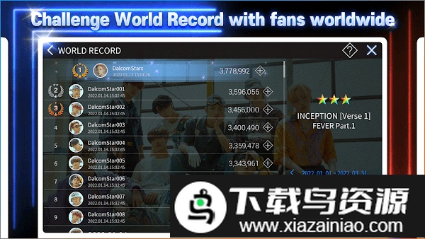 4、与全球ateez粉丝同台竞技;通过在每周联盟中争取更高排名来获得额外奖励;每月挑战个人最佳纪录,探索自己的潜力极限;每个赛季的世界排行榜将验证你的真实实力。