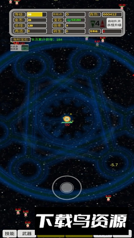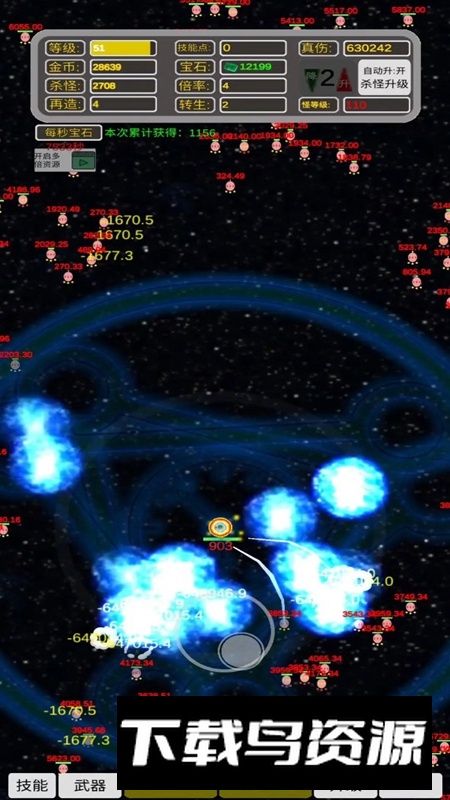 2.丰富的道具系统:炸弹、地雷、减速器等辅助道具可供使用,它们能帮助你更高效地消灭成群的敌人。