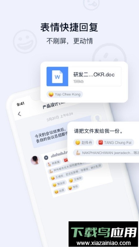 增进同事关系,对话及时顺畅;提升沟通时效,减少邮件往来压力;表情与图片让文字交流更生动;历史记录方便随时查阅。