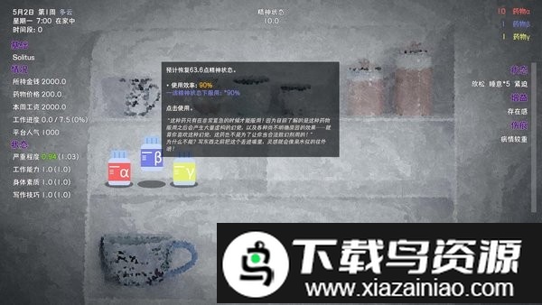 Solitus的每一天都在与病痛对抗,玩家需要帮他分配时间,完成工作并维持健康;压力与疲劳如影随形,死亡有时仿佛成为一种解脱。故事让玩家切身感受那份沉重的疲惫,体会在痛苦世界中生存的艰辛。