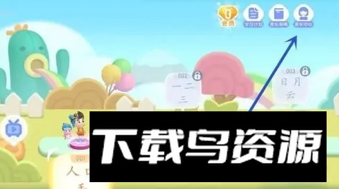1、打开多多学汉字软件,在右上方点击家长中心。