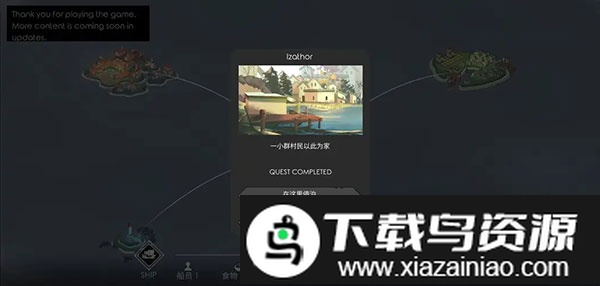 6、修建船厂后即可建立贸易站,准备好食物并配置船员便可启航;目前可探索三个岛屿,游戏内容仍在扩展中,最终面对的敌人仅是领主派来的先锋将领。