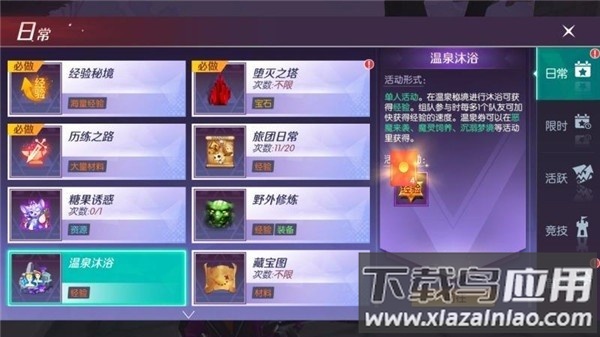1、前往温泉秘境进行沐浴可获得经验奖励,组队参与时每增加一名队友都会提升经验获取效率;温泉券可通过恶魔来袭、魔灵饲养及沉溺秘境等活动取得。