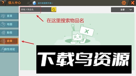 2. 找到左侧的仓库入口,在上方搜索框输入需要查找的物品名称即可。