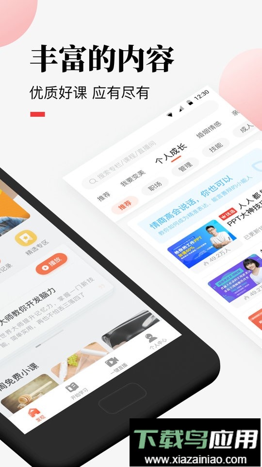 1. 丰富内容:课程覆盖全品类,汇集各行业意见领袖与知名IP,满足不同用户的喜好需求;