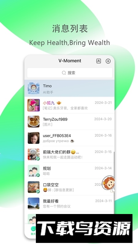 V-Moment APP最新官方版本是一个服务于全球用户的健康生活平台,融合了即时通讯、健康管理、休闲娱乐与信息获取等多重功能。该软件旨在通过全面的生活服务支持,助力使用者达成身心平衡与生活愉悦的愿景,追求健康快乐的日常体验;感兴趣的朋友不妨在本站下载。
