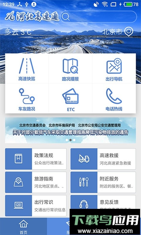 1. 软件集成了高速气象信息、ETC服务网点查询以及高速公路服务电话等实用功能。