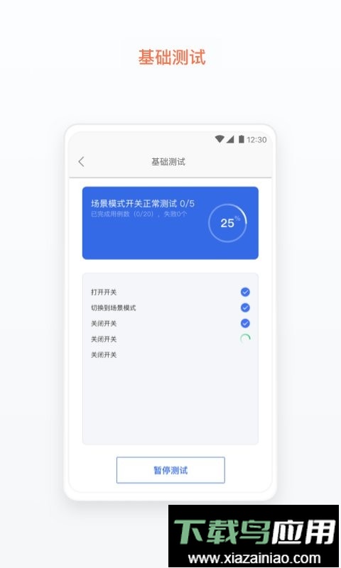该应用旨在帮助开发者迅速定位设备问题。它以功能模块为划分依据,提供多种测试执行模式,能够对设备硬件状态及其与应用的交互链路进行一体化综合测试。