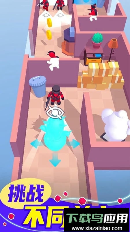 这款游戏核心是潜行闯关玩法;你需要仔细观察环境并借助地形隐藏自己,时刻警惕不要被敌人发现;游戏采用卡通主题设计,关卡内设有各种道具协助你躲避追捕,成功逃离房屋即可通关,整个过程充满挑战性。