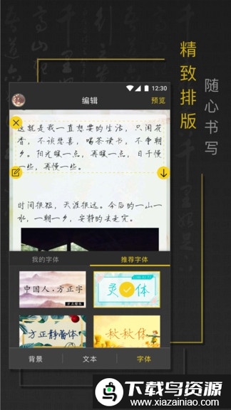 这是一款以优质字体为核心的图文编辑软件,它基于官方正版字体资源,贴合用户日常记录与分享的需要。软件集合了大量字体、图片、滤镜及装饰挂件等素材,用户可根据个人喜好自由进行图文混排编辑,更换背景、调整字体、添加滤镜或挂件等操作。无论是简短便签还是篇幅较长的文章,都能快速转换为高清图片,方便分享至主流社交平台,与好友共同交流互动。