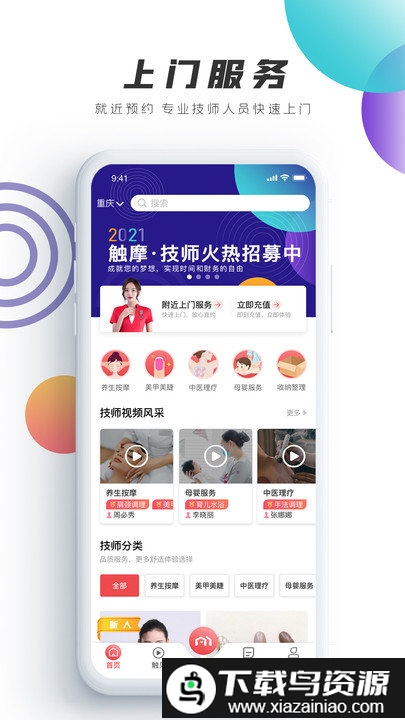 触摩app是一款专业的上门按摩生活服务软件,它通过专业团队为用户提供便捷的上门服务,项目覆盖美容按摩、足浴护理以及家政服务等多个领域,使用起来十分方便,有相关需求的朋友可以轻松体验,喜欢的就在本站下载。