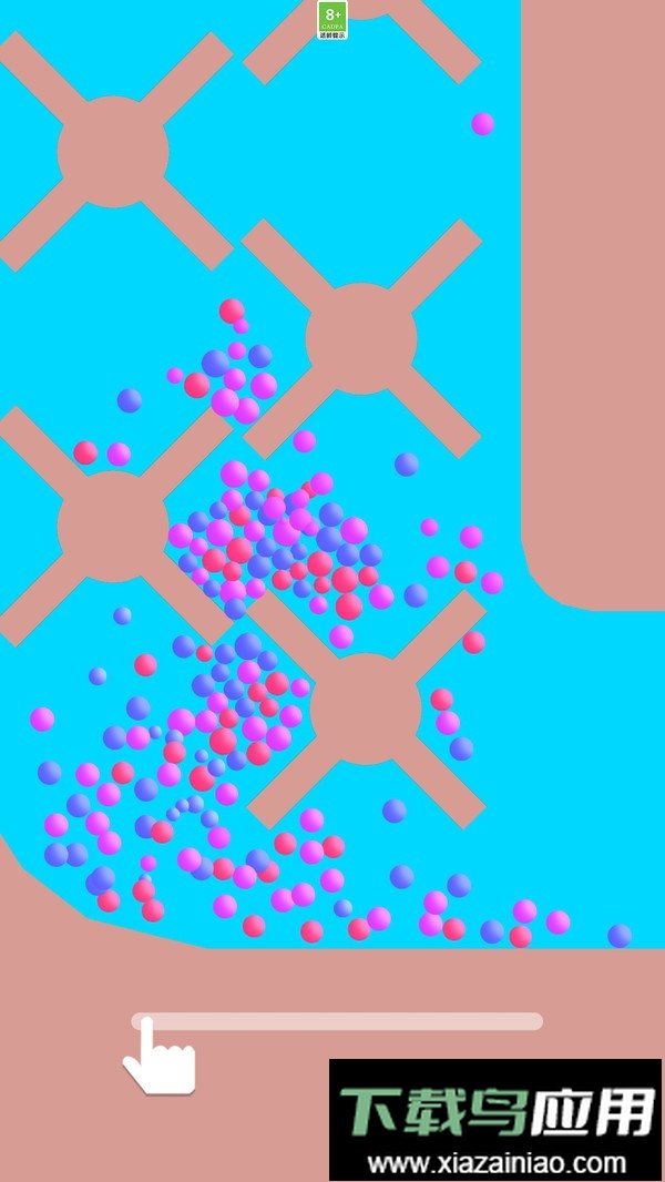 2、每条赛道都分布着不同颜色的小球,通过引导它们聚集来获得力量,从而加快闯关速度。