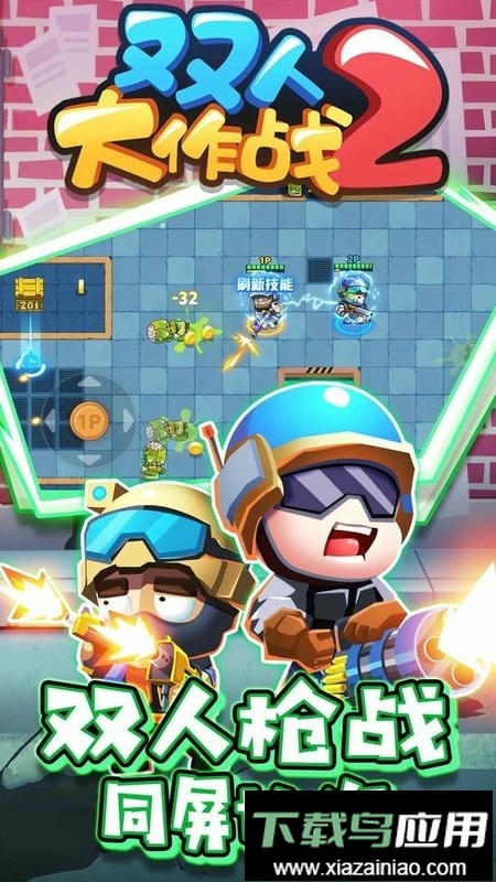 双人大作战2是一款支持双人同屏协作的手游,玩家将置身于生化危机背景的末日世界中,与伙伴并肩作战。游戏提供多种对战模式,包含丰富的枪械选择和塔防射击玩法,强调团队配合与策略运用,带来紧张刺激的枪战合作体验。
