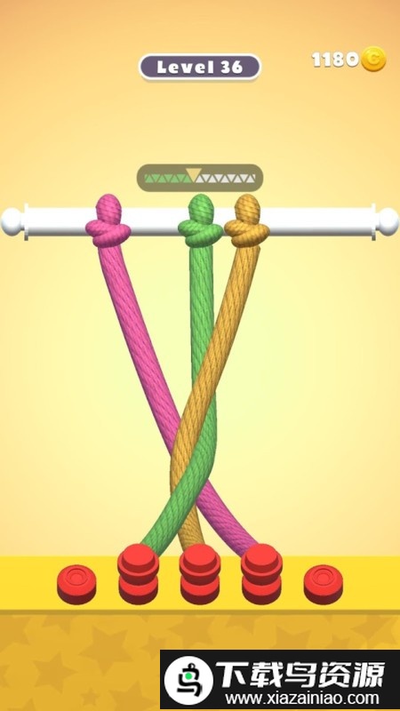 这是一款模式新颖的休闲益智游戏,旨在锻炼玩家的脑力与观察力。面对各式各样的关卡,你的任务就是找出解开绳结的关键,将被束缚的物体成功放下,从而顺利通关。